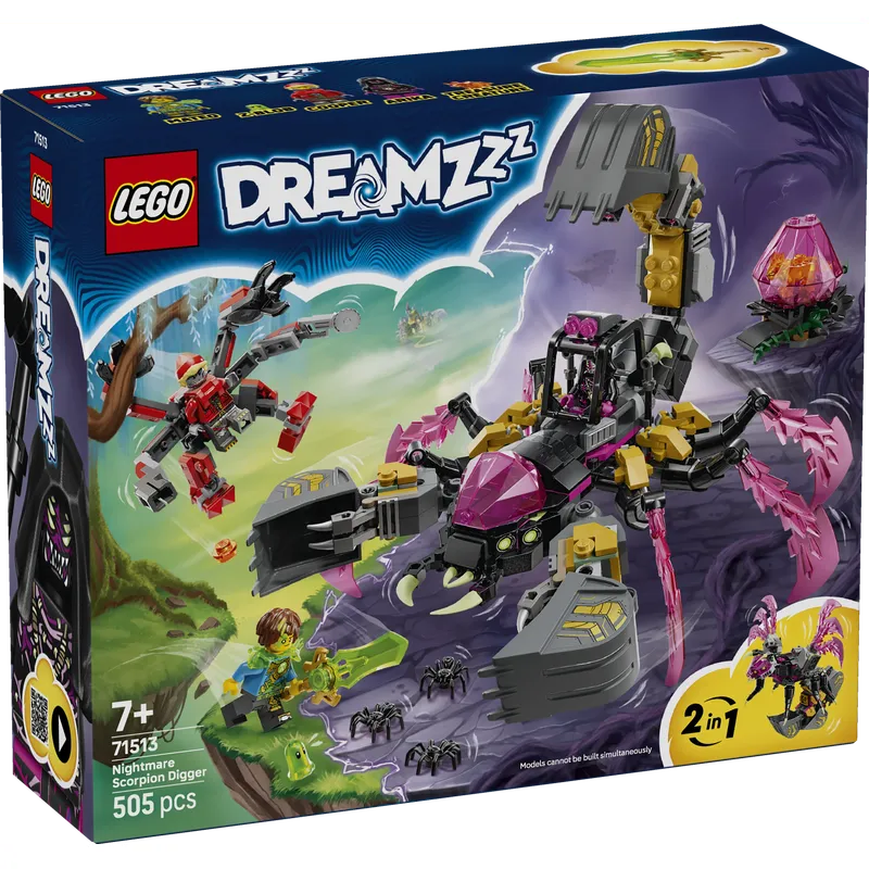 Fuel imaginations with this awesome LEGO® DREAMZzz™ Nightmare Scorpion Digger (71513) building set for boys and girls ages 7 and up. It offers 2 build options, so kids can create a scorpion excavator toy or a biomechanical wasp.