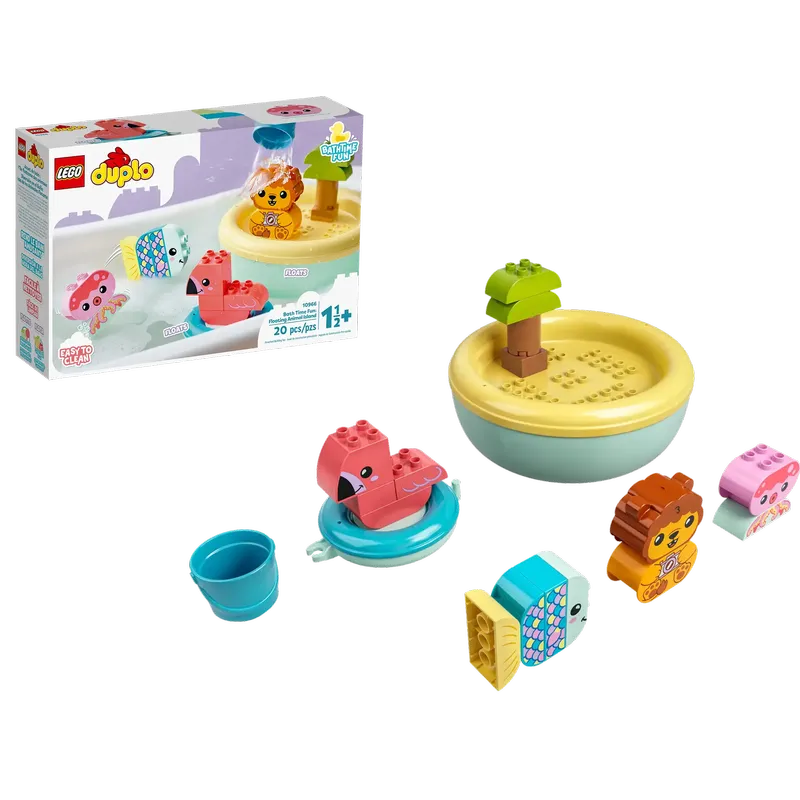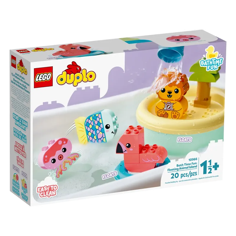 LEGO® DUPLO® My First Bath Time Fun: Floating Animal Island (10966) is a feature-packed, developmental playset for animal-loving kids aged 18 months and up.