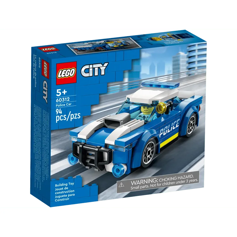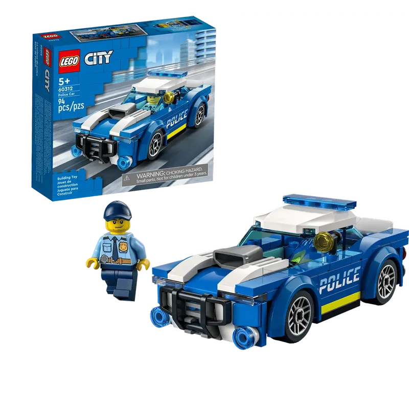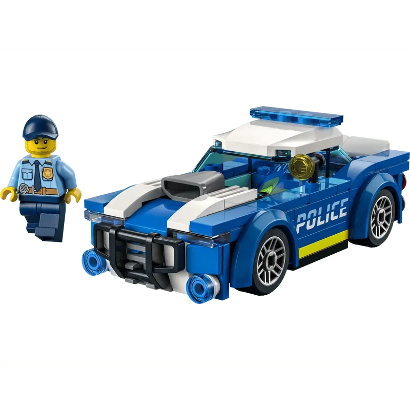Introduce kids to fun with the LEGO City Police Car (60312) — a sporty patrol car with cool rims and a police officer minifigure for exciting chase adventures.