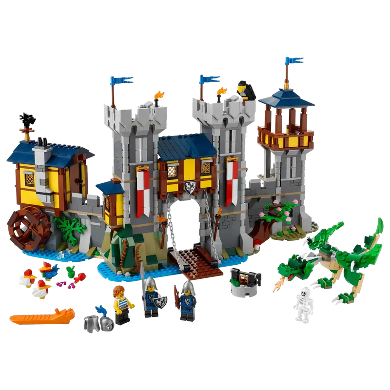 Kids can enjoy hours of action with the LEGO® Creator 3in1 Medieval Castle, then rebuild it into a castle tower toy or a marketplace.