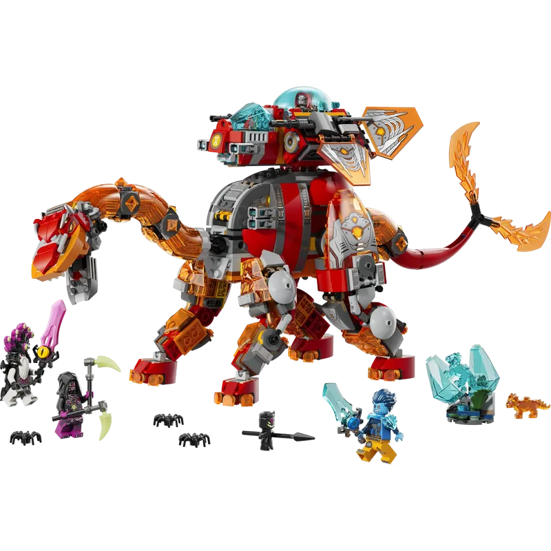 The brontosaurus is a towering dinosaur forged from molten rock, featuring a massive twin tail (ready to sweep away anything in its path) and a detachable spaceship, while the stegosaurus is a battle beast with reinforced armor, a blazing club tail and a separate spaceship build. The dinosaur building kit also includes 4 minifigures that encourage pretend play and come with collectible sword accessories to fight off 3 spiders, plus a diamond egg and Orange and Blue Treasure Creatures.
