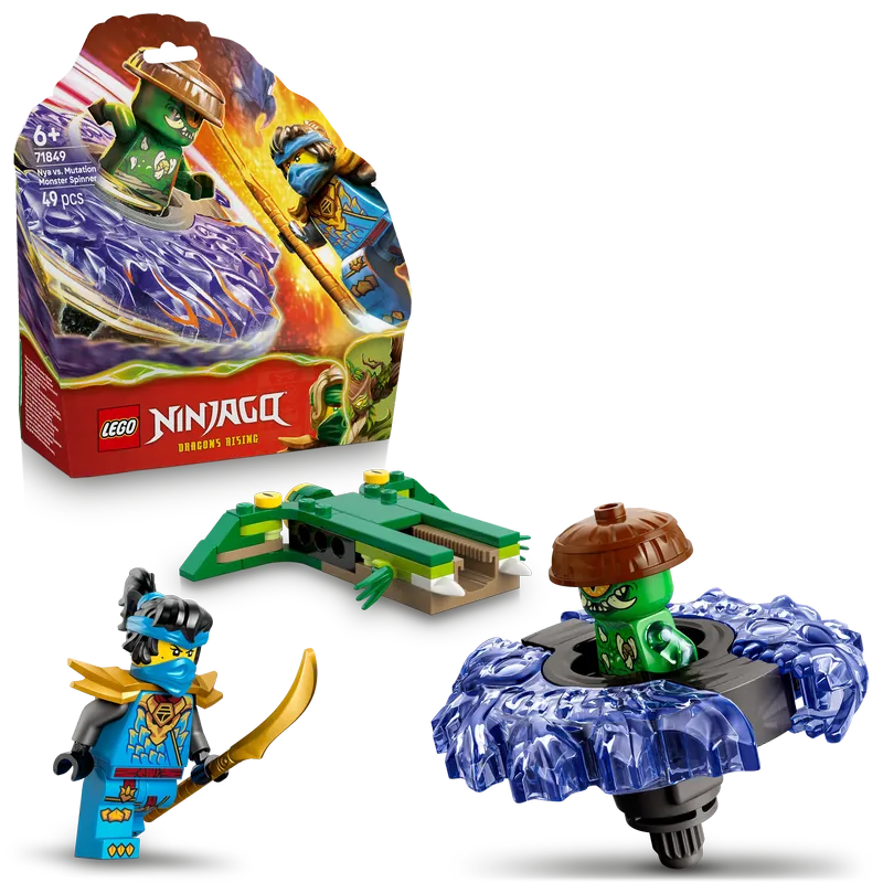 This great value small LEGO set comes with 2 minifigures: Nya with a glaive weapon accessory and the villainous Mutation Monster, who can ride inside the spinner toy. Kids enjoy countless hours of good vs. evil battles with these NINJAGO characters.