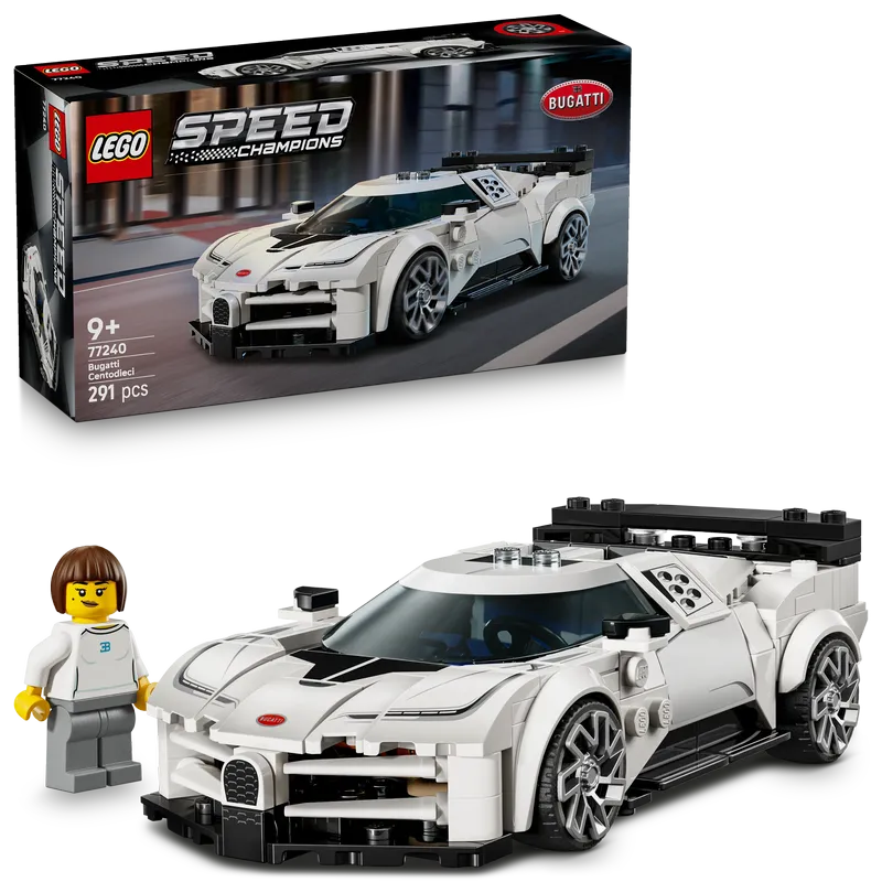 Kids aged 9 and up can collect, build, play with and display this LEGO® Speed Champions Bugatti Centodieci Hyper Sports Car (77240) model. Designed to pay homage to the legendary Bugatti EB 110 model, this impressive toy for boys and girls features many famous design details from the real-life vehicle.