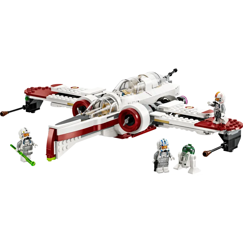 The buildable starship playset includes 4 LEGO Star Wars characters. The Clone Pilot Odd Ball, Clone Pilot Jag and Clone Pilot LEGO minifigures can be placed in the cockpits, and there is also space on board for the R4-P44 LEGO droid figure.
