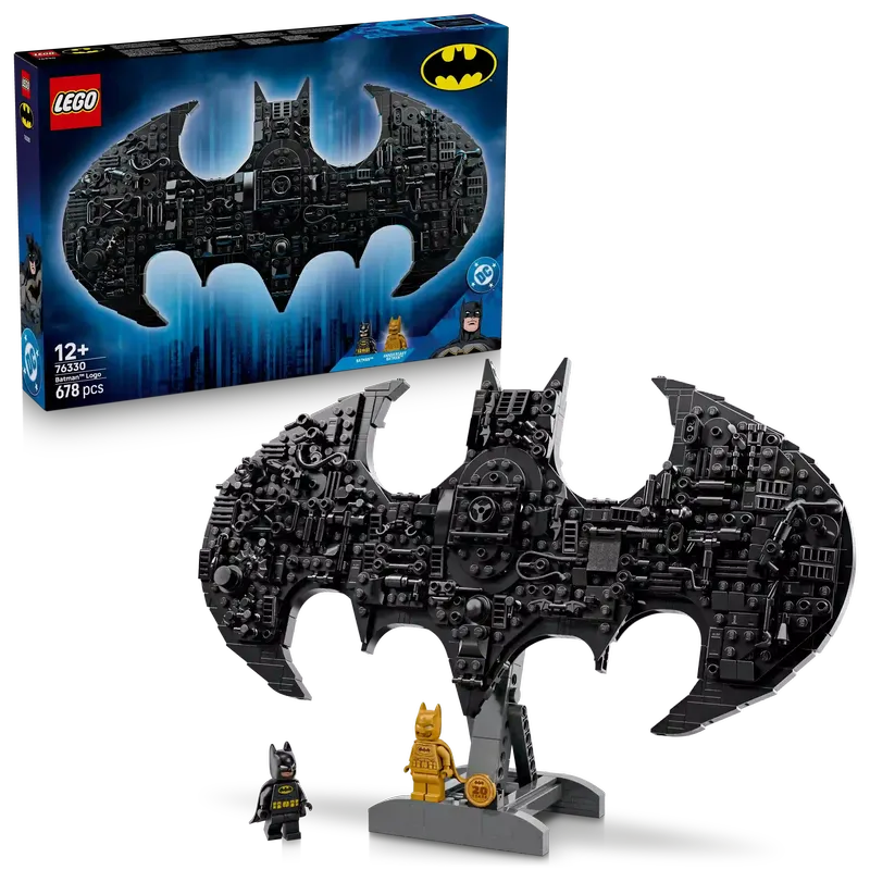The Batman™ Logo building set celebrates 20 years of LEGO DC Batman with 2 minifigures and the iconic sign decorated with items from the DC Universe.