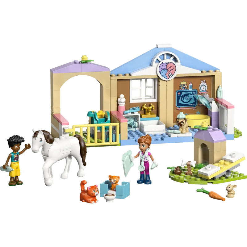 Вдохновляйте детей в возрасте от 4 лет создавать свои собственные истории с игровым набором «Ветеринарная клиника с животными» LEGO® Friends (42696) для девочек и мальчиков. В этом детализированном наборе для игры в ветеринаров есть все необходимое для ролевых игр и ухода за животными. Тут есть конюшня, смотровая комната, лежанки для животных, корм, ветеринарное оборудование, игровая площадка для питомцев и многое другое.