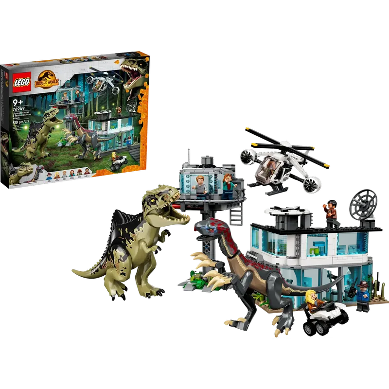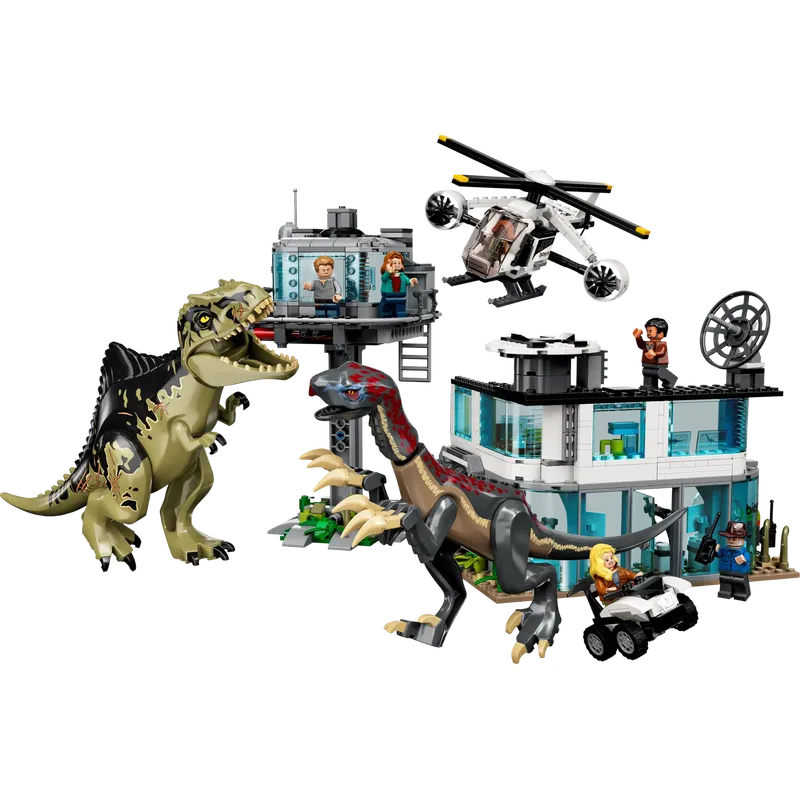 Дети смогут воссоздать эпические приключения из «Парка Юрского периода: Доминион» с помощью сборного штаба, багги и игрушечных фигурок динозавров гиганотозавра и теризинозавра.