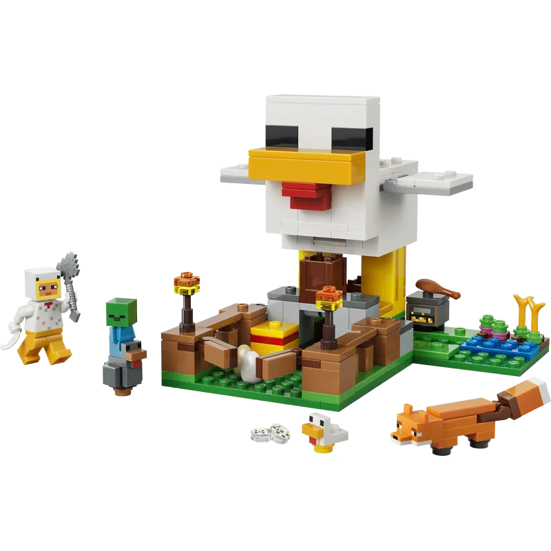 Игровой набор «Куриная ферма» LEGO® Minecraft® (21585) для девочек и мальчиков в возрасте от 7 лет позволяет ухаживать за курами и выращивать урожай. В этом детском игровом наборе для сборки игрокам предстоит позаботиться вместе с минифигуркой Куриной поклонницы о снежной курице и цыпленке, а также разобраться с лисицей (которая хочет съесть снежную курицу) и малышом-зомби (который любит кататься верхом на курицах).