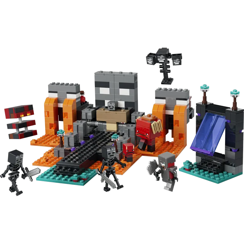 Пройдите через портал в Нижний мир и примите участие в Битве с Визером — сборном конструкторе LEGO®, полном захватывающих экшен-сцен из Minecraft® и множества персонажей Minecraft.