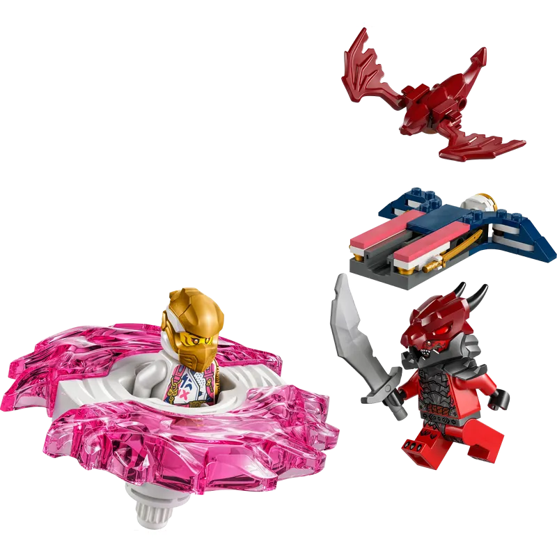 В этом небольшом наборе LEGO есть две минифигурки: Сора с аксессуаром-мечом, которую можно поместить в спиннер Кружитцу дракона, и злобный воин драконов, вооруженный собственным мечом. Также в наборе есть маленькая модель драконьего зверька. Дети смогут наслаждаться ролевыми играми, устраивая сражения добра со злом с этими популярными персонажами NINJAGO.