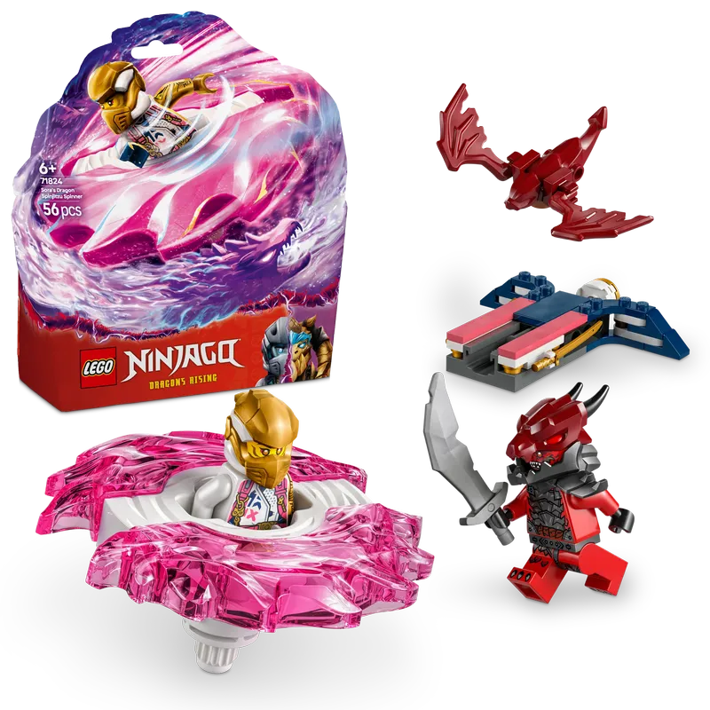 Игрушка «Спиннер Кружитцу дракона Кая» (71824) позволяет мальчикам и девочкам в возрасте от 6 лет разыграть потрясающие сцены из третьего сезона сериала «Ниндзяго: Восстание драконов». Дети могут собрать этот небольшой набор LEGO®, а затем нажать на кнопку пусковой установки, чтобы запустить спиннер Кружитцу дракона Соры в стремительное вращение и увидеть, как иногда разлетаются два силовых элемента, когда спиннер попадет в цель.