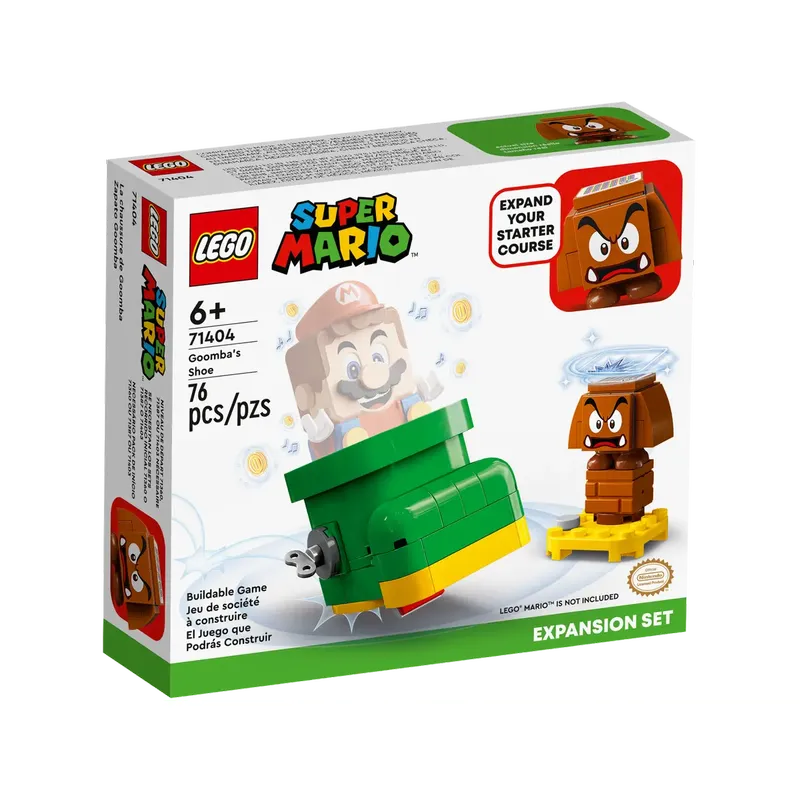 Приготовьтесь к приключениям в мире LEGO® Super Mario™ с дополнительным набором «Ботинок Гумбы» (71404) для детей от 6 лет. В нем есть Ботинок Гумбы из кубиков, а также игрушечная фигурка Гумбы LEGO, которую дети могут добавлять на собранные ими уровни. Помогите LEGO® Марио, LEGO® Луиджи или LEGO® Пич (фигурки не входят в набор) забрать ботинок, а потом прыгайте и делайте сальто, чтобы заработать виртуальные монеты. (Примечание: для интерактивной игры требуется стартовый набор 71360, 71387 или 71403.)
