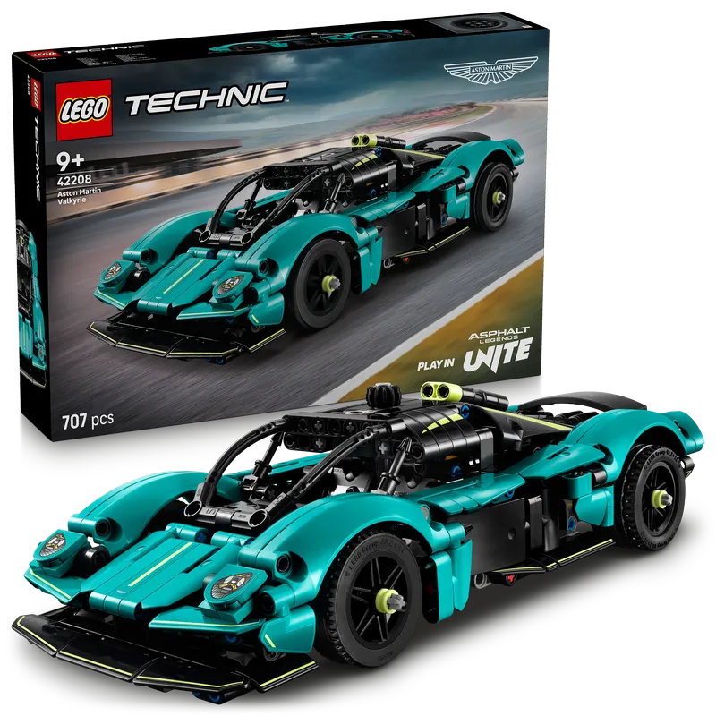 Этот игрушечный набор Aston Martin Valkyrie включает в себя сборную модель спортивного автомобиля LEGO® Technic™ с множеством реалистичных деталей.