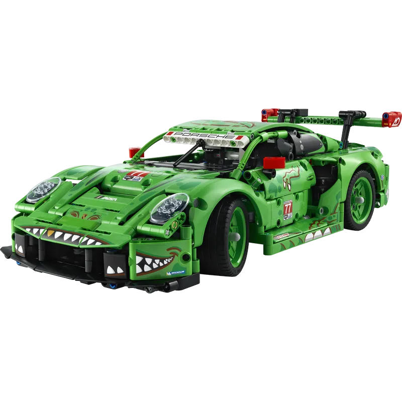 Вдохновите детей на создание собственного гоночного автомобиля на тему динозавров с помощью этого подарочного набора LEGO® Technic™ Porsche 911 GT3 R REXY AO Racing Car.